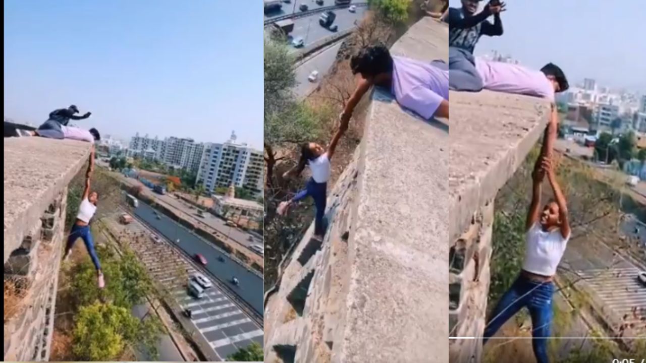 ടെറസില് നിന്ന് യുവാവിന്റെ ഒറ്റകൈയില് തൂങ്ങി താഴേക്ക് കിടന്നാണ് യുവതി റീല്സ് ചിത്രീകരിച്ചത്. ഇവര്ക്കൊപ്പമുണ്ടായിരുന്ന സുഹൃത്തുക്കളാണ് വിഡിയോ ചിത്രീകരിച്ചത്. ഒരു സുരക്ഷാ സംവിധാനവും ഉപയോഗിക്കാതെയായിരുന്നു റീല്സ് ചിത്രീകരിച്ചതെന്ന് വിഡിയോയില് വ്യക്തമാണ്.